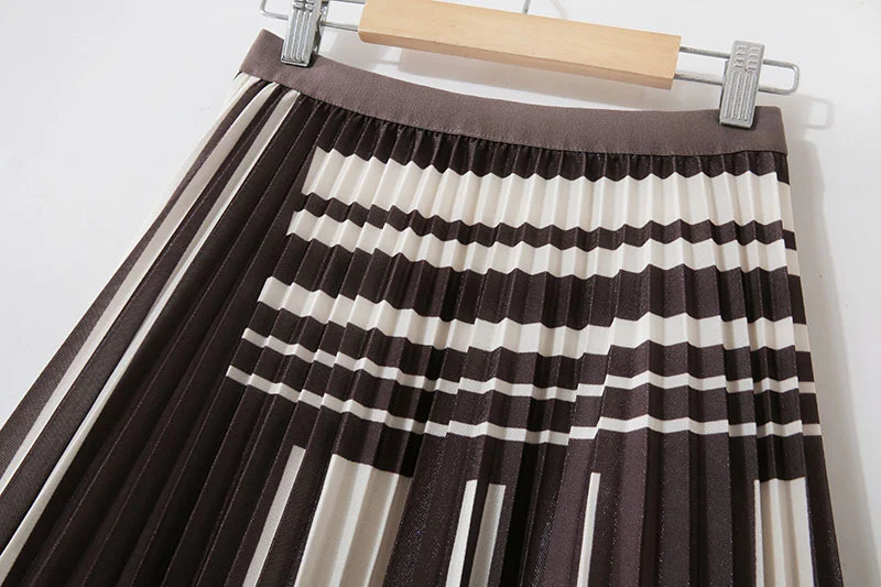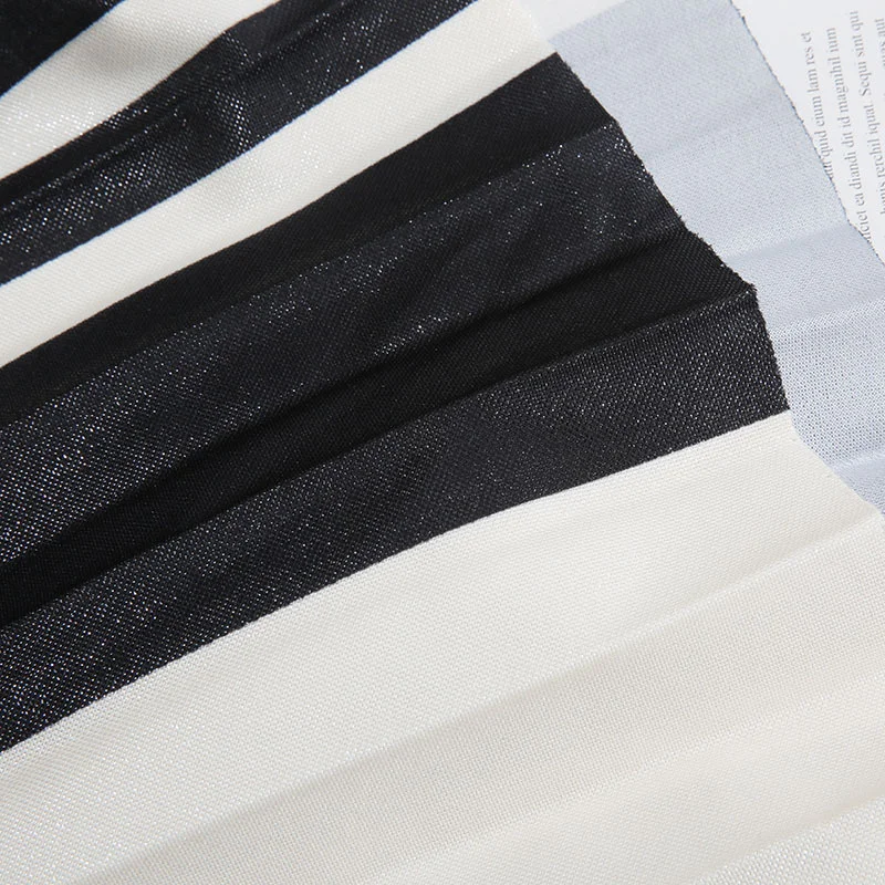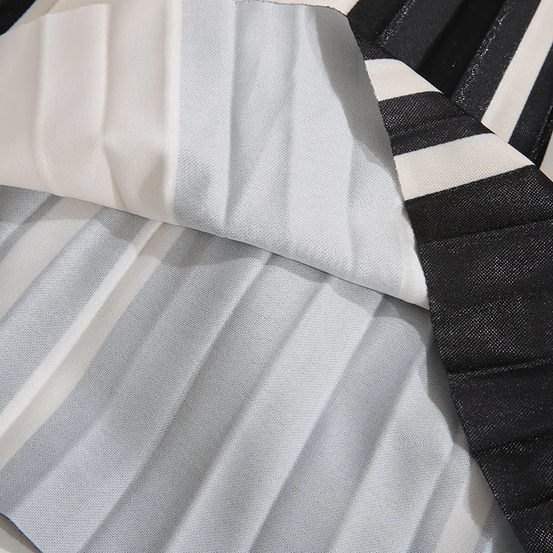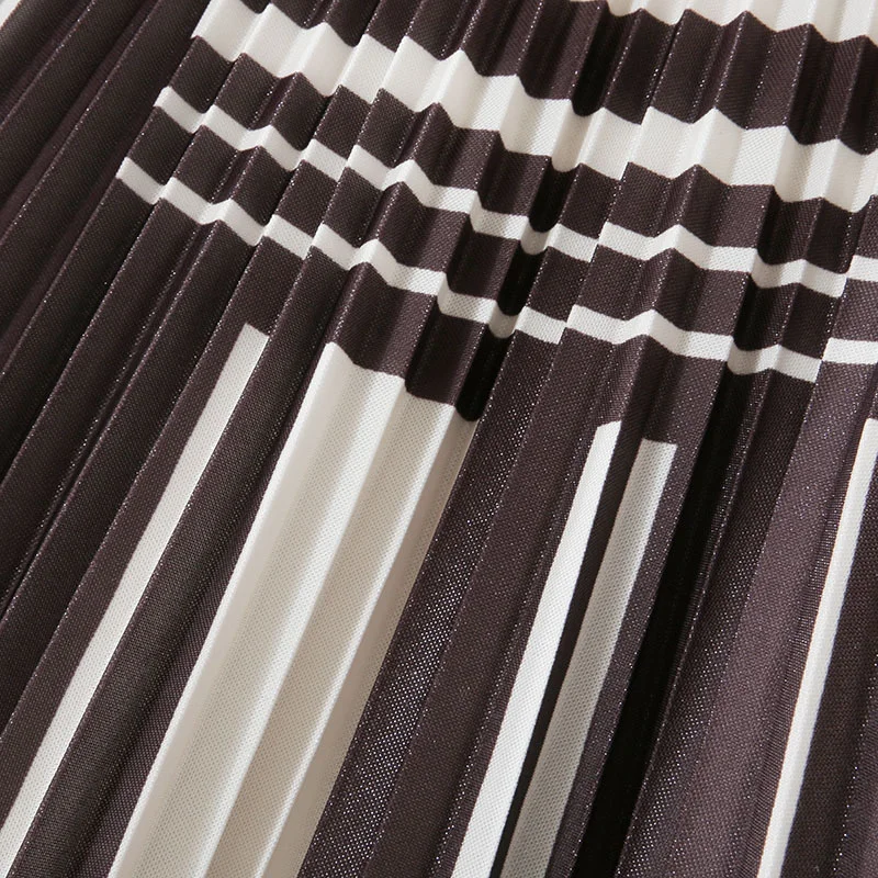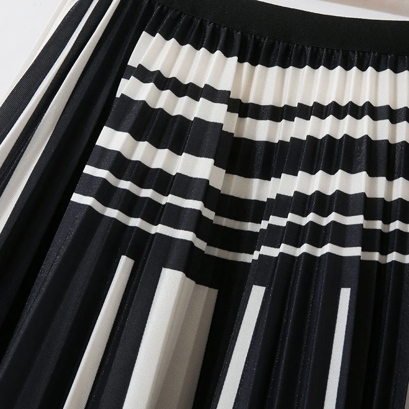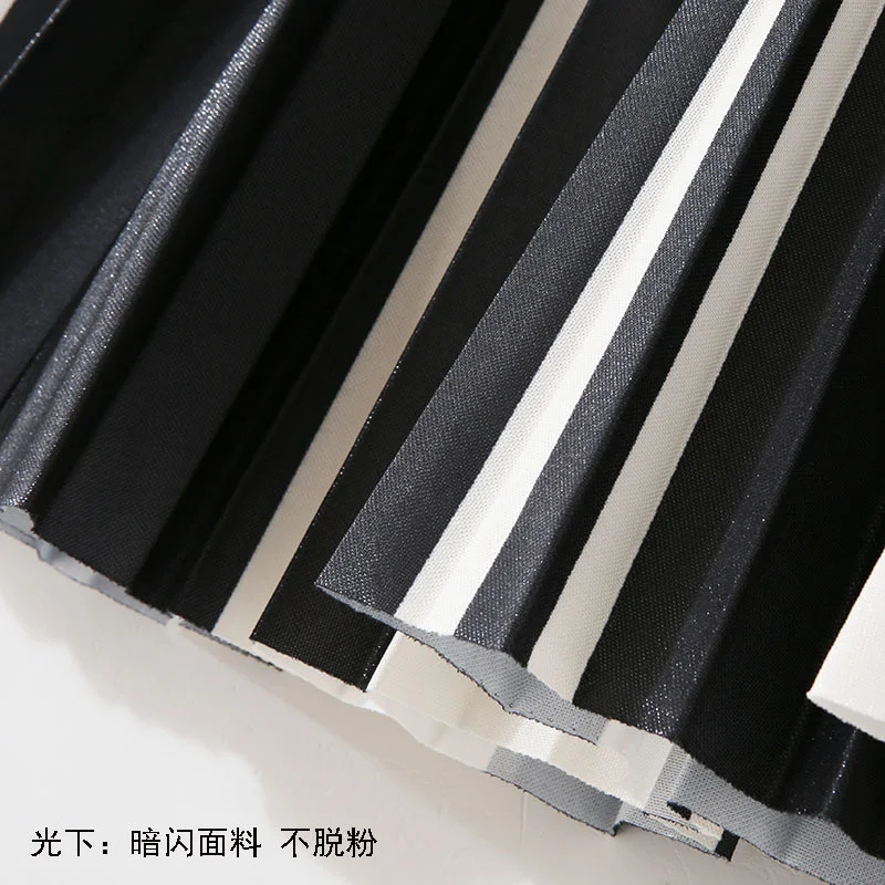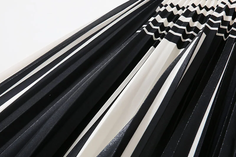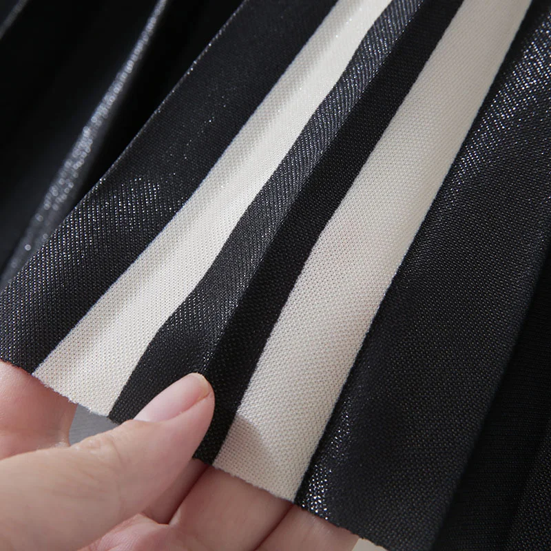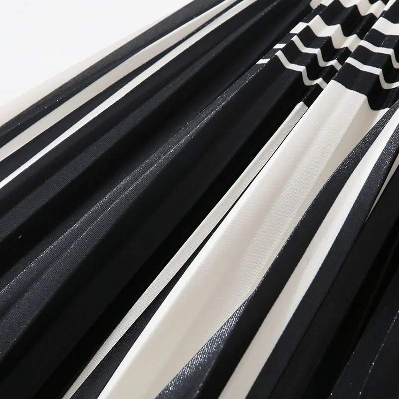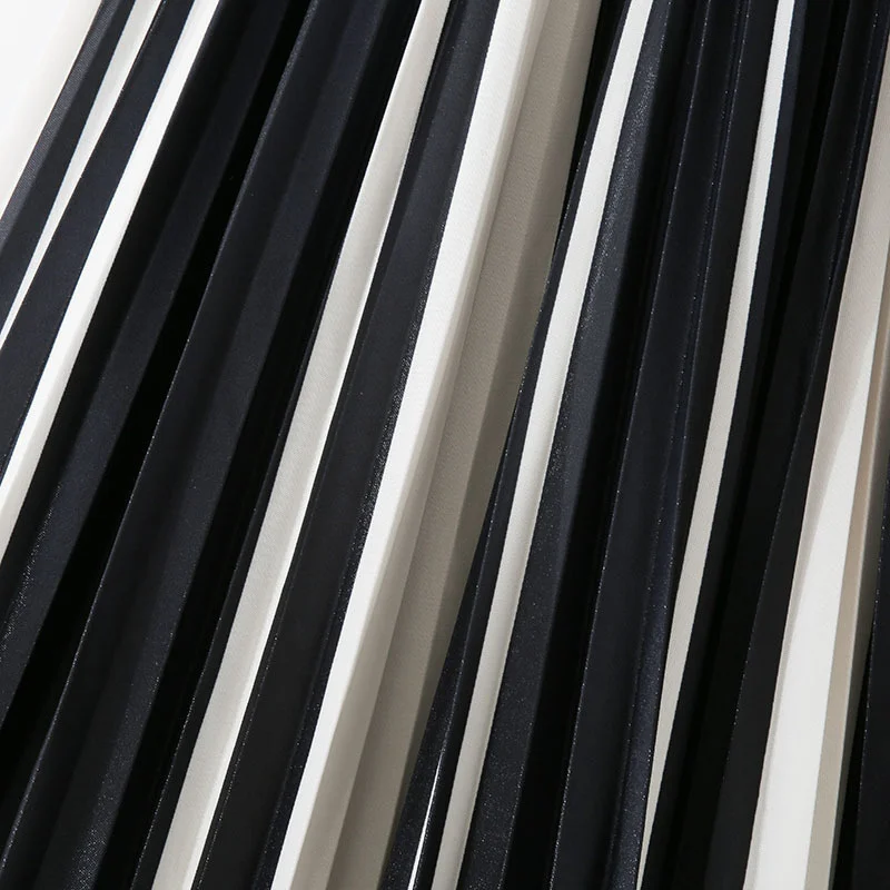 XFPV 2023 New Autumn Summer Fashion Korean Shiny Simple Elegant Pleated Striped Stitching Slim Mid-length Pleated Skirt SM1972