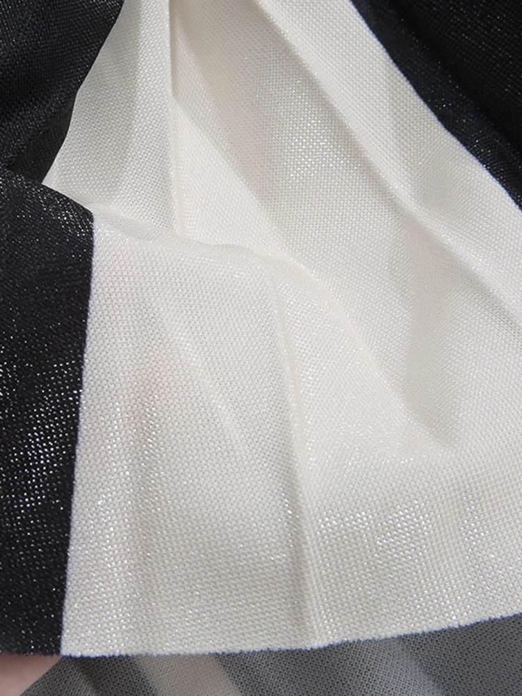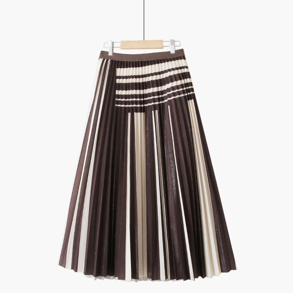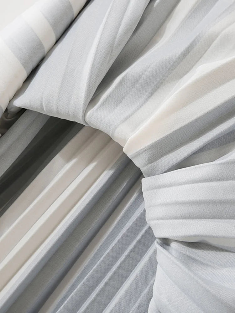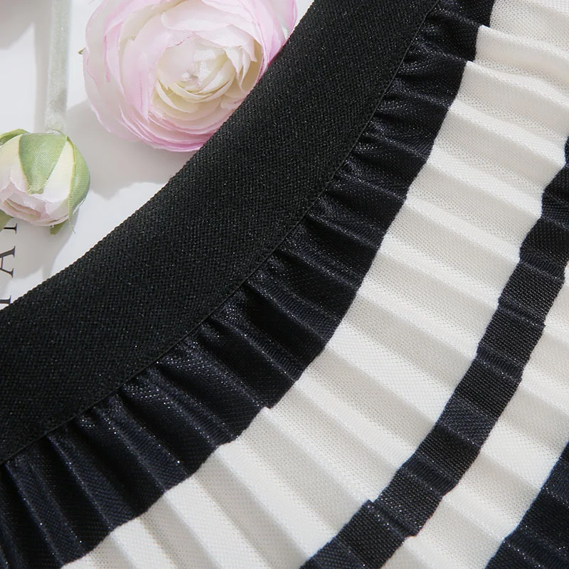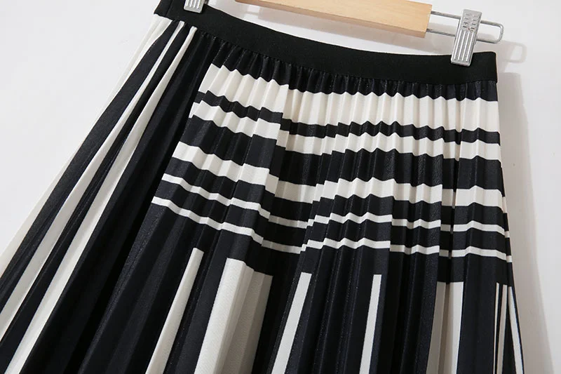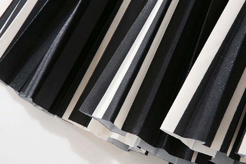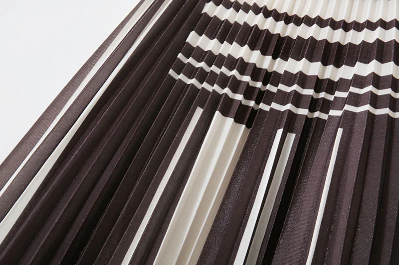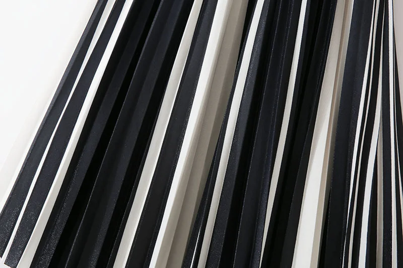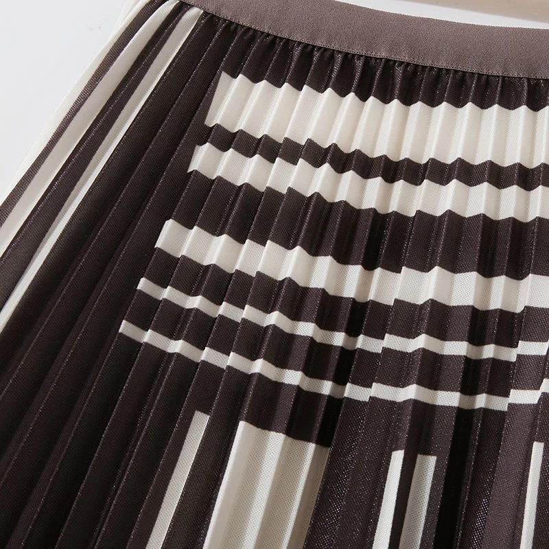 XFPV 2023 New Autumn Summer Fashion Korean Shiny Simple Elegant Pleated Striped Stitching Slim Mid-length Pleated Skirt SM1972